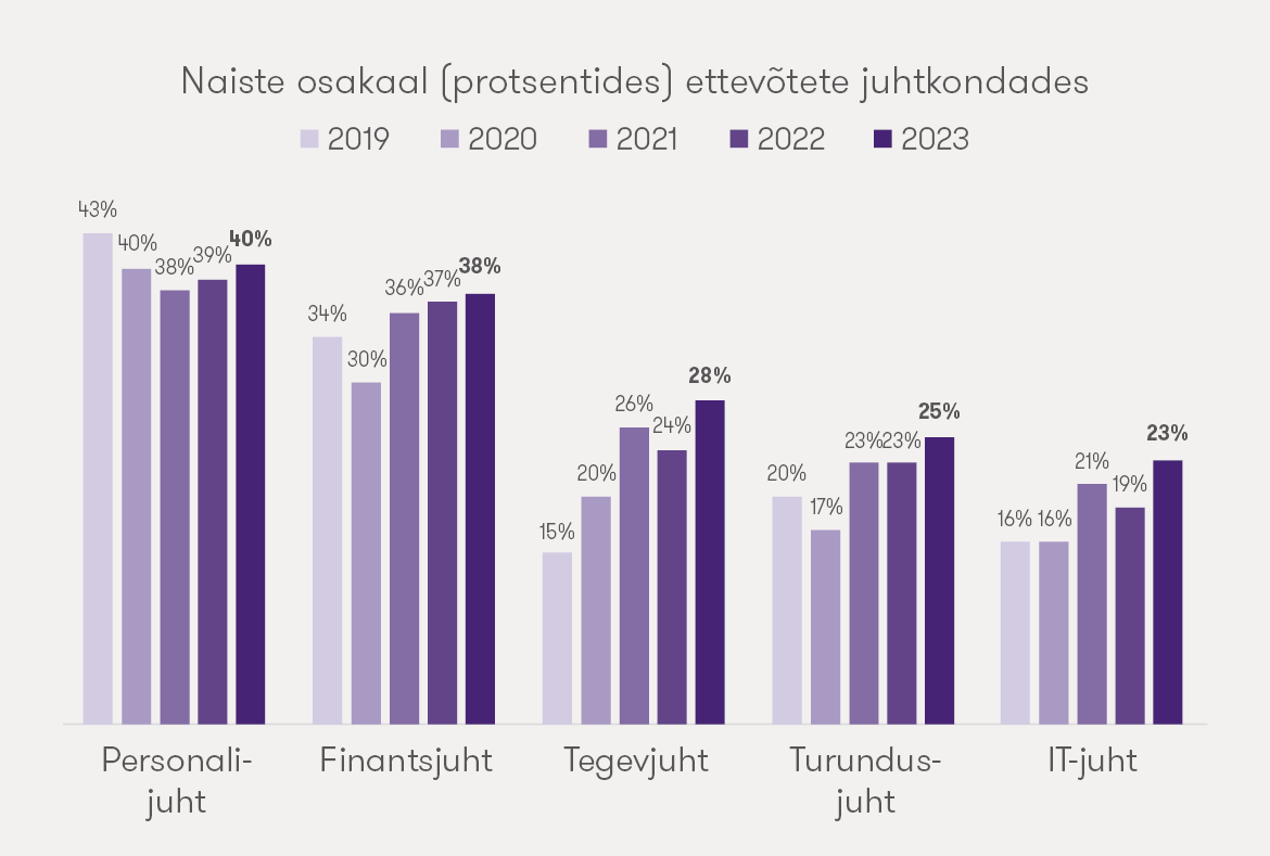 Naistepäeval on paslik luubi alla võtta õrnema soo osalemine juhtimises. Rahvusvaheline ärinõustamisettevõtete võrgustik Grant Thornton on juba alates 2003. aastast korraldanud kümnete riikide tuhandete ettevõtete seas iga aastal uuringut [ 3532 kb ], et välja selgitada naiste osakaal ettevõtete tippjuhtkondades. Rõõmustav on see, et üle maailma numbrid aina paranevad: aastal 2003 oli Grant Thorntoni uuringu andmeil ettevõtete tippjuhtkonnas naisi 19%, aga 2022. aastal peaaegu kolmandik (32%).