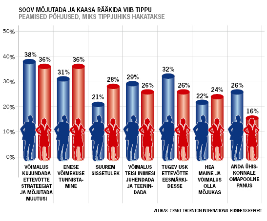 Möödunud aasta teises pooles viis auditeerimis- ja raamatupidamisettevõte Grant Thornton 36 riigis läbi uuringu, et välja selgitada naisjuhtide osakaal ettevõtetes ning uurida, mis motiveerib inimesi juhi kohale asuma.